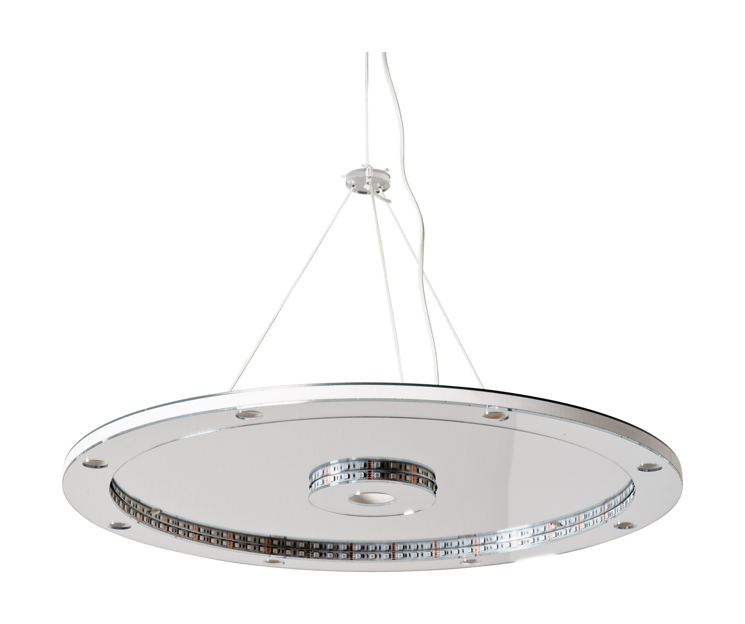| Inhalt: | 1 Leuchtelement mit Acrylglasspiegel und LED Technik, Aufhängung, 10 Steckscheiben aus Kunststoff zur Befestigung von Stoffen und Dekoartikeln, 1 Fernbedienung, 1 Deckenhaken mit Dübel, 6 m Anschlusskabel, Lieferung erfolgt ohne Stoff |
